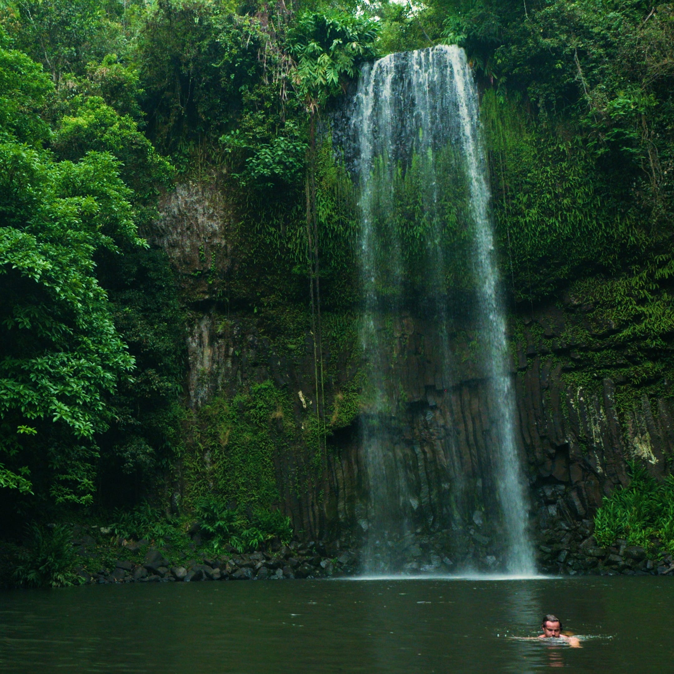 The first waterfall — Millaa Millaa — is right off the parking lot. No hike to speak of. Classic, stunning. I had planned to stick around for a while, maybe swim.